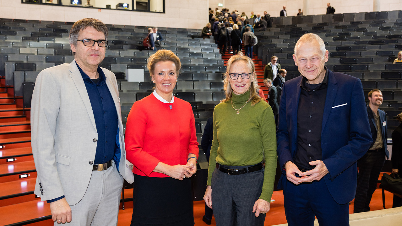 TH Köln2Eröffneten die Zukunftskonferenz: Prof. Dr. Oliver Locker-Grütjen, Wissenschaftsministerin Ina Brandes, Prof. Dr. Birgitta Wolff und Prof. Dr. Manfred Fischedick (v.l.) (Bild: Malte Reiter)